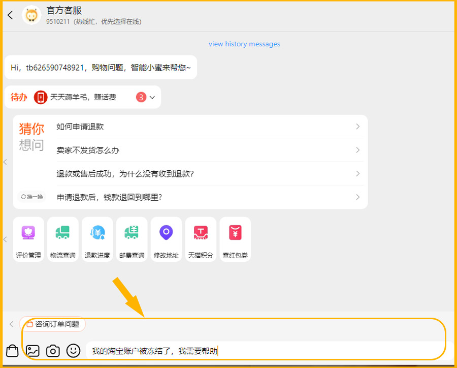 Cũng giống như các trang web thương mại điện tử khác, Taobao có đội ngũ nhân sự sẵn sàng tư vấn người dùng xử lý các vấn đề liên quan tới tài khoản, đơn hàng, khiếu nại … bạn thực hiện theo bước sau: