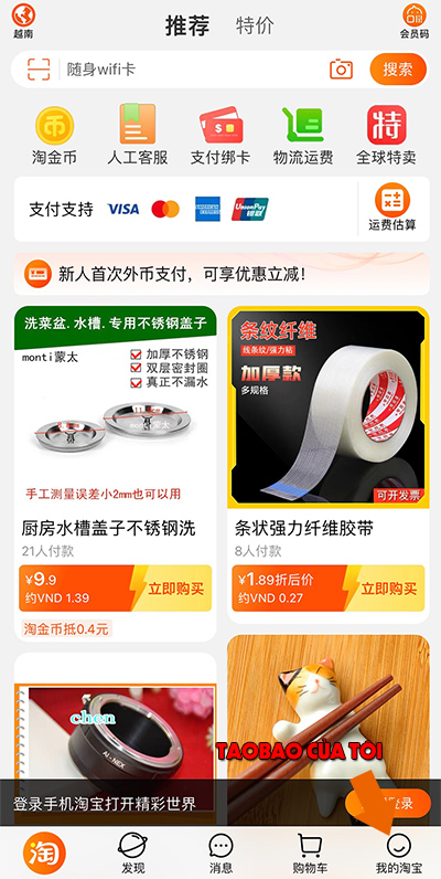 Thao tác cũng tương tự như khi thực hiện hủy đơn trên máy tính, tuy nhiên giao diện sẽ có một chút khác biết, trên ứng dụng điện thoại bạn cũng tìm tới phần “Taobao của tôi” góc dưới cùng tay phải của ứng dụng.